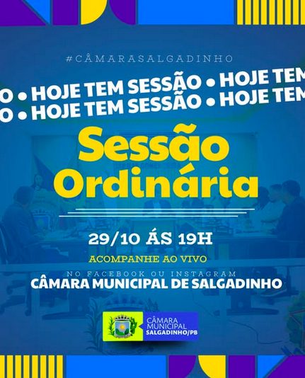Hoje (18) às 19h iremos realizar de forma presencial, mais uma Sessão Ordinária da Câmara Municipal de Salgadinho. Você é nosso convidado para acompanhar todo o debate do Poder Legislativo. A transmissão será realizada em nossa página no Facebook.
