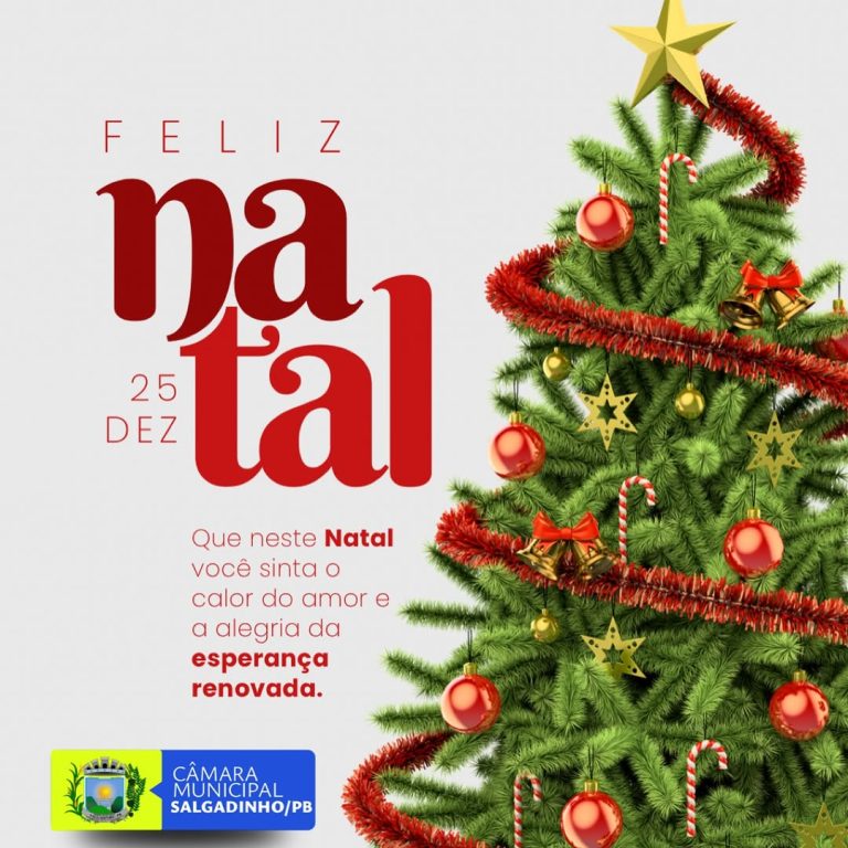 A Câmara Municipal de Salgadinho, por meio de seus representantes, expressou seus votos de um Natal abençoado e repleto de luz para todas as famílias salgadinhenses. A mensagem institucional ressalta a importância de que o espírito natalino promova a renovação da fé, da esperança e do amor em cada lar, fortalecendo os laços comunitários e familiares.